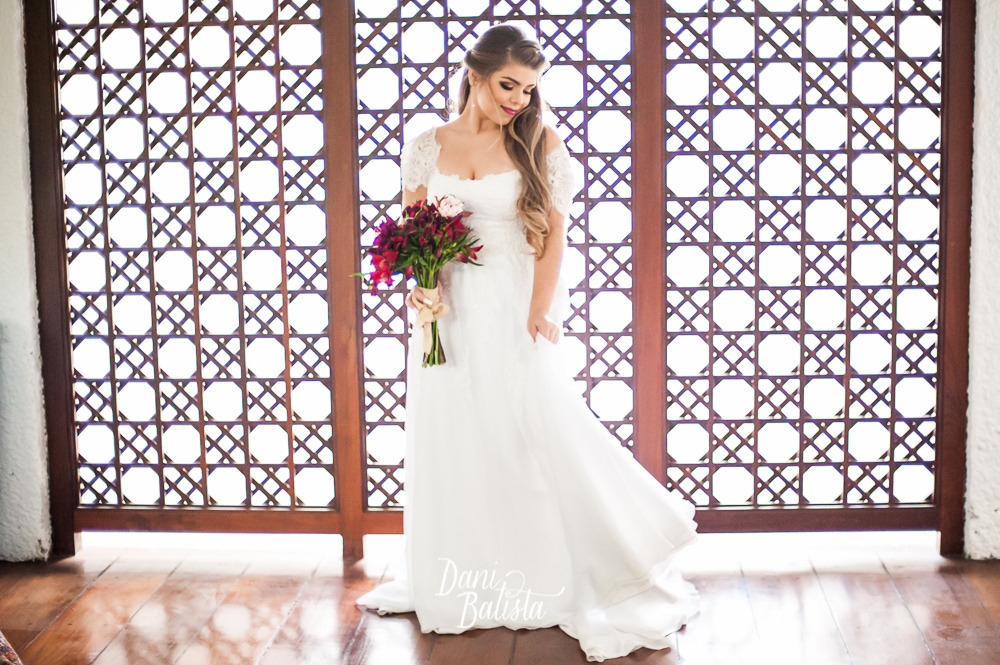 O vestido de noiva do Atelie Gora, usado nesse editorial para noivas modernas, foi um vestido de musseline de seda com renda francesa. Um vestido de noiva leve e romântico, tanto para noivas que querem casar de dia quanto para casamentos a noite.